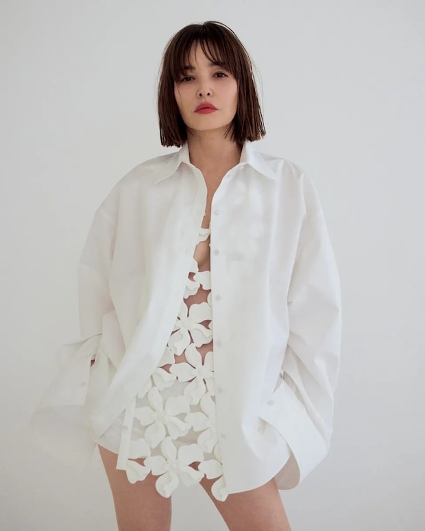 梨花さんのクリーンな色香漂うヴァレンティノのシャツルック