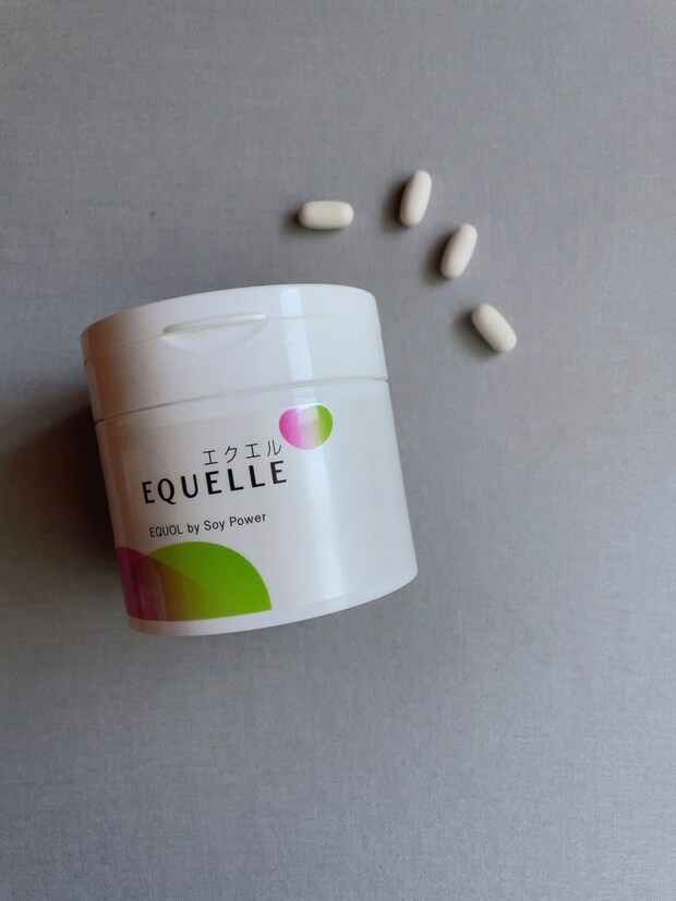 最後は女性ホルモンと同じような働きを期待できる「エクオール」のサプリメントです。エクオールはそもそも大豆製品で、イソフラボンを摂ると腸内細菌によって作られるんですが、日本人はその腸内細菌を持っている人がなんと二人にひとり! そして私は検査をしたところ……持っておりませんでした。なので、ゆらぎ期対策にエクオールのサプリメントを毎日4粒摂り続けています。正直なにかからだに変化を感じたわけではないけれど、お守り的にもう10年近く飲み続けています。