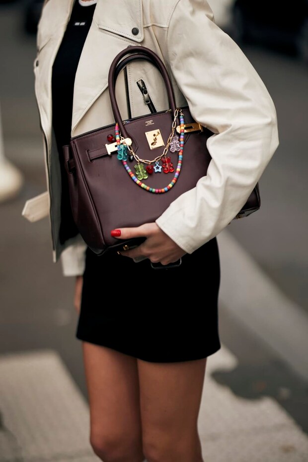 レディの代名詞、エルメスの〈バーキン〉も、ビーズのネックレスやドイツ産の人気のグミベアをかたどったチャームでお色直し。