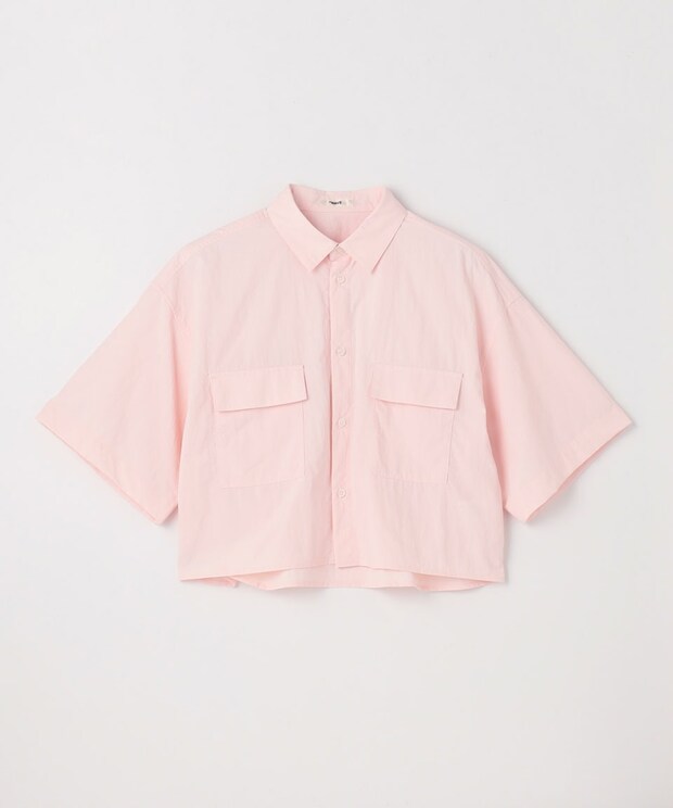 着こなしの主役は、ワークテイストのパッチポケットでカジュアルに振ったシャツ。ゆったりフォルムとクロップト丈の絶妙なコントラストが今っぽい。合わせたタックパンツは右ページと同じもの。後ろのみゴムを通しギャザーを寄せた、リラックスフィットなはき心地です。