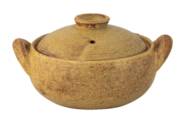 丸くて肉厚な土鍋はしっかり蓄熱し、火を止めた後の余熱で料理を美味しく仕上げる。食材にゆっくり熱を伝え、優しい味に。みそ汁鍋[大]¥14,300(長谷園) 問https://igamono.co.jp/