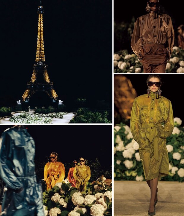 アンソニー・ヴァカレロ率いるサンローランは、円熟期に入ったと言っても過言ではないはず。エッフェル塔の光が夜の闇に煌めく下、YSLと描いた真っ白な花の間をモデルが歩く様子はExtremely Chic。「ショーが終わってすぐ、梨花さんから“このルックがいつ入荷するのか知りたい”と写真が数枚送られてきました(笑)。でもその気持ち、分かる! と思って。彼はいつも多彩なルックを披露する手段を使わず、ひとつの強いアイデアにフォーカスして、そのバリエーションで見せる手法を選ぶのですが、それこそがブランドの世界観をすごく洗練された印象にしている。多くのデザイナーデビューに満ちたシーズンだったにもかかわらず、その美しさは印象的でした」(編集T)
