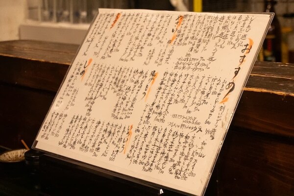 筆で丁寧に書かれた文字たちには、店主の几帳面な人柄とちょっとのユーモアがにじんでいる。お客さんの食欲と好奇心をそそり、料理を待つ時間さえも楽しませてくれる。