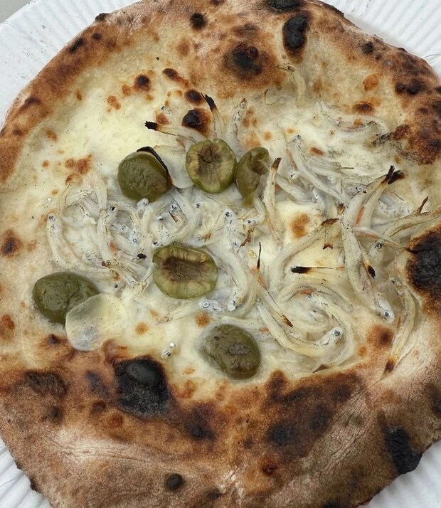 香ばしさに大満足。しらすとオリーブのピザ。サイズ感も良かったな