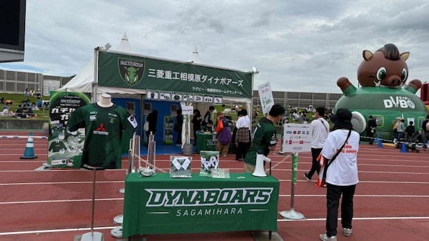 ラグビーも好きなので、リーグワン所属のプロラグビーチーム、三菱重工相模原ダイナボアーズのブースも記念撮影
