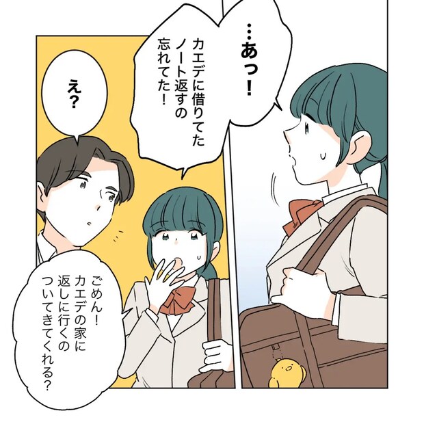 「ごめん!カエデの家についてきてくれる?」家へ向かう二人