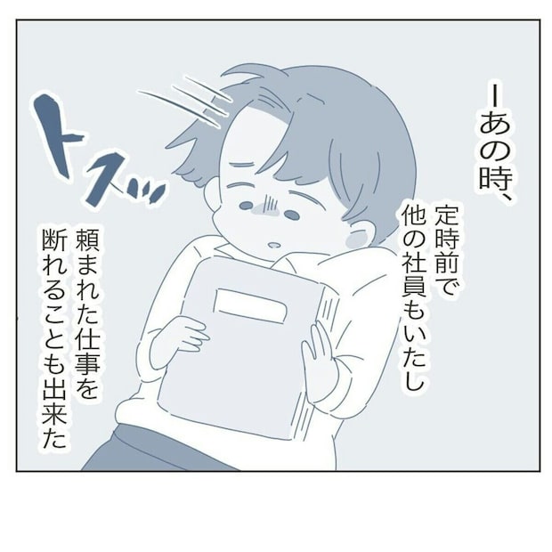 定時で帰る約束をしますが、残業をしてしまいます。断れるはずの仕事を断らず、妻のSOSを無視し続けた結果入院になったと義母から電話で知らされたのでした。