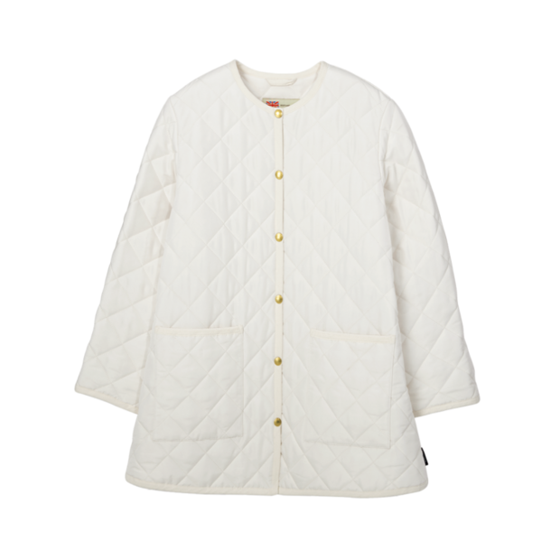 「マッキントッシュがプロデュースするカジュアルウェアブランドであるトラディショナルウェザーウェア。ブランドを代表するノーカラーのキルティングジャケットは、ごく軽量で暖かく、上品。キルティング部分に高密度に織られたポリエステル素材を使用し、お手入れしやすいのも人気の秘訣だとか」