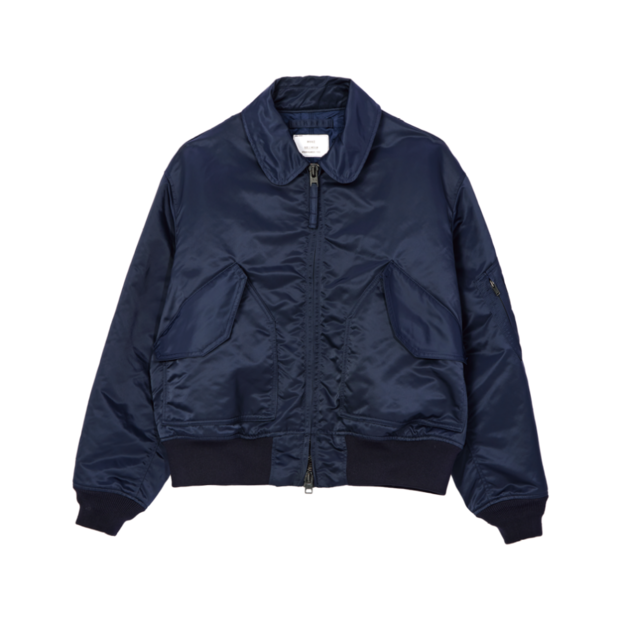 「CWU-45/P型のフライトジャケットをベースに、ややルーズに落とし込んだシルエットが特徴。中綿入りなので、薄手に見えて保温性は抜群。微光沢のナイロンツイルを使用していて、品のあるカジュアルさが魅力!」