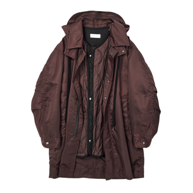 2019年にスタートしたアウターブランドのヴァシュモンからは、M-51フーディをキルティング仕様でモダンに仕上げたロングコートをピックアップ。ウエストと裾のドローストリング、袖口のアジャストベルトでシルエットを変化させられるのも嬉しい。撥水加工済みです