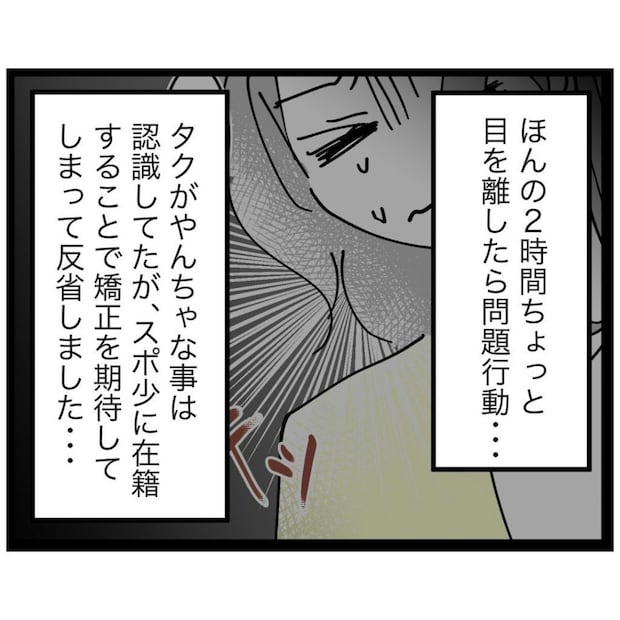 もっつんさんは息子・タクのやんちゃさが、スポ少野球を通じて減っていくことを期待していました。ところが、もっつんさんが2時間ほど目を離した隙に、はやくも問題行動を起こすタク。