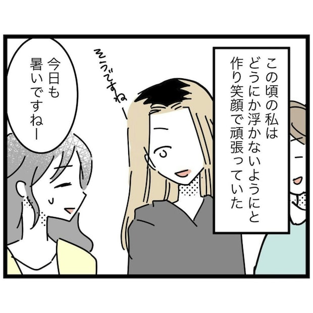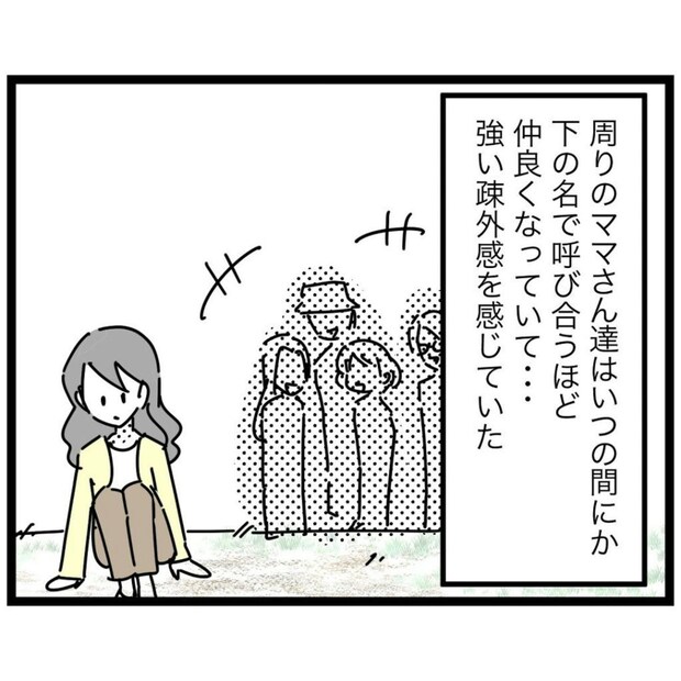 周囲のママさんたちは、下の名前で呼び合うほどに仲良くなっているようですが、もっつんさんはまだ、作り笑顔で頑張っています。