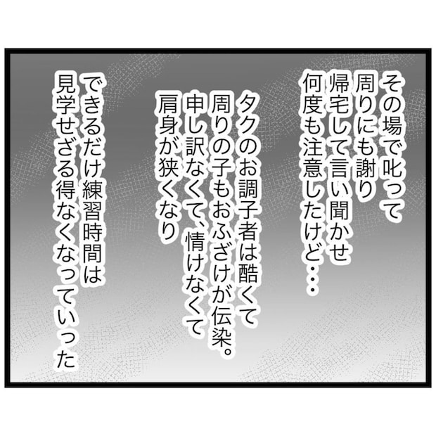 練習中にたびたび問題行動を起こす息子に頭を悩ませたもっつんさんは、結局練習中ずっと付き添わざるを得なくなってしまいました。