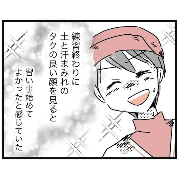 チームの保護者同士の輪にも入れず孤独を感じる一方で、練習後の息子の笑顔に「習わせてよかった」とも感じていました。
