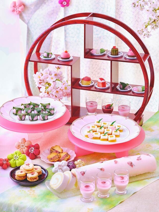 また、ふわりとさくらが香る「桜餡ロール」や「いちごと桜プリン」、さくらの形を模った「桜クッキー」、「桜餡みたらしチーズムース」など、心躍るさくらスイーツも盛りだくさん。パンケーキには、春ならではの味覚が楽しめる桜ジャムを付けて召し上がれ。