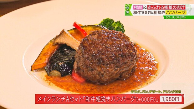 こちらは大人気メニューの「和牛粗挽きハンバーグ」。