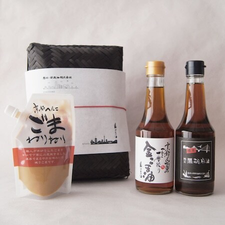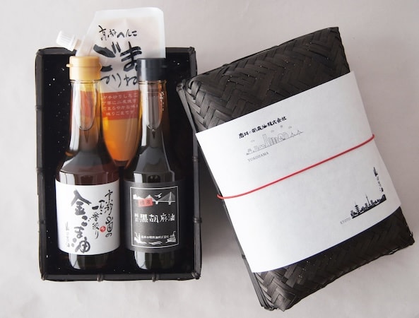 「東西ごま職人の技 -横浜と京都の香りを贈る-」は、山田製油の2商品、岩井の胡麻油の1商品の計3商品がセットになっている。