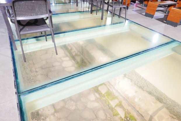 実はマクドナルドのお店を建設する過程で、地下に貴重なアッピア街道の一部があることが判明。