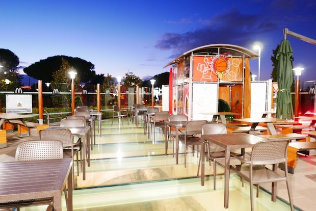 アメリカの象徴ともいうべきマクドナルドと、地中海の古代文明が、ごく自然に融合しているこのお店。