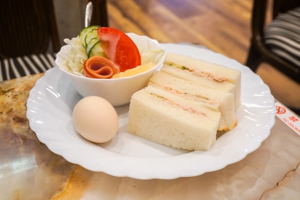 メニューは3種類。トースト、卵サンド、ツナサンド。ロールパンは軽く焼かれて、ふわふわの食パンはそのままで。整った断面の美しさは、手間と気遣いの表れのようでもある。