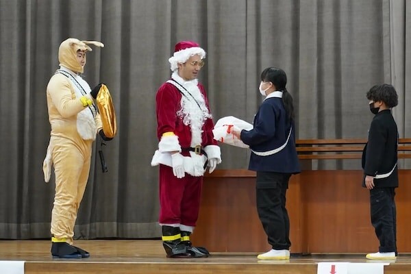 さらに全児童から代表5人が、岡山県玉島警察署から夜光タスキの着用や交通ルールを守ることを推進する特別隊員「玉島ルミナスミニポリス」に任命された。