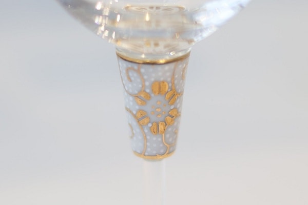 清峰堂で製造を行う石川県の伝統的工芸品である九谷焼と、国内生産の手づくりの吹き硝子を融合させた「九谷和グラス」が誕生して20年余り。そんな中、ガラスや脚の破損による修理の依頼の中で、自宅でワイングラスを使う人から「ステムが折れてしまったが、口当たりが気に入っていたので再利用できないか」という声が届いたという。