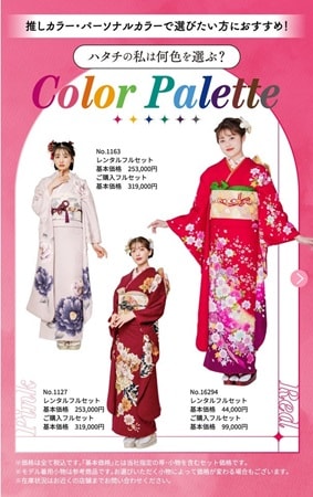 公式LINEアカウントでパーソナル診断もできる。まずはパーソナルカラー診断をしてから、WEBカタログを確認すると似合う振袖がきっと見つかるだろう。