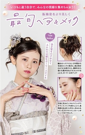 また、2026年最新の振袖×ヘアメイクスタイルも掲載。王道のアップスタイル、くらげヘア、ボブアレンジなどの写真映えする人気ヘアアレンジから、振袖に合うメイクまで幅広く紹介している。振袖と合わせてヘアメイクも掲載し、「振袖を着た時の完成形」がイメージしやすいのも魅力だ。