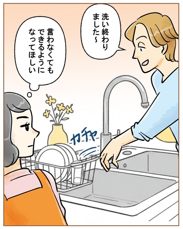 そして、「洗い終わりました~」とカップを水切りラックに入れるツカサを見ながら、「言わなくてもできるようになってほしい」と呟きました。