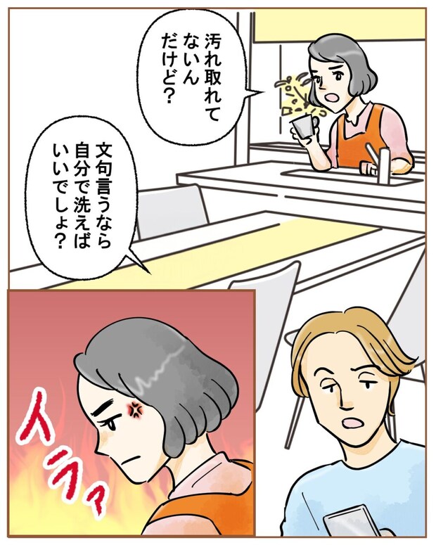 「汚れ取れてないんだけど?」と言うと、「文句言うなら自分で洗えばいいでしょ?」とツカサに言われ、イライラがおさまりませんでした。