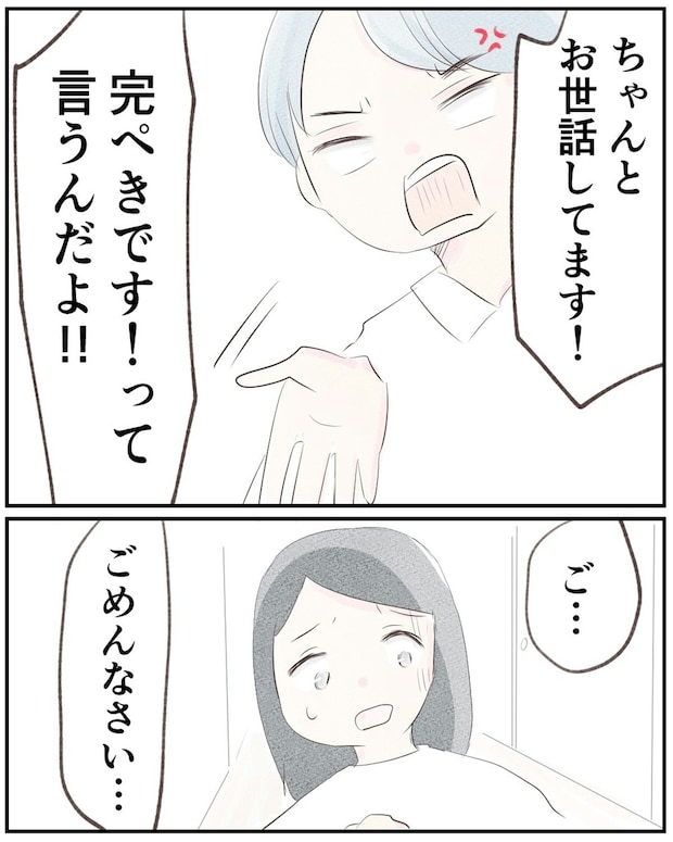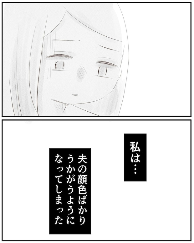 夫は、ゆうさんに子育てに対しての返事が自分の言ってほしいことではなかったので怒っていました。泣いて謝るゆうさんは、このころから夫の顔色ばかりうかがうようになっていきます…。