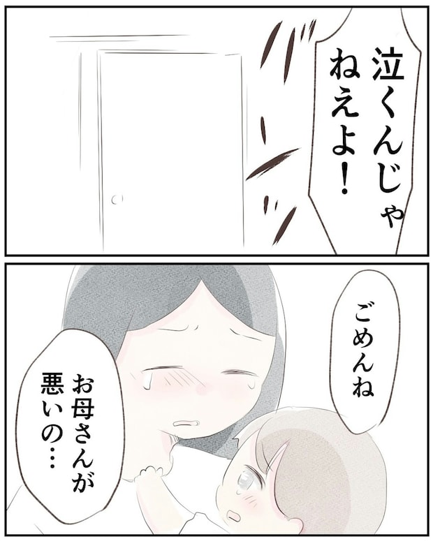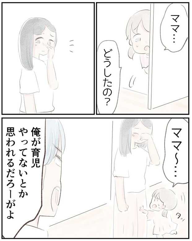 ゆうさんにひどい言葉を浴びせる夫。娘が慰めてくれる中、ゆうさんは「お母さんが悪い」と自分を責めてしまいます。