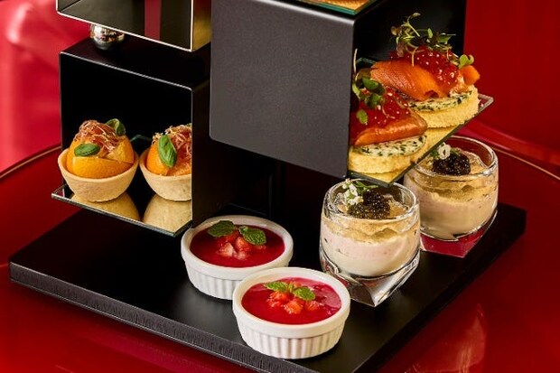 セイボリーでは、フォアグラの濃厚なうまみをいちごの酸味とはちみつの甘さが引き立てる「フォアグラのフラン ストロベリーソースと国産アカシアはちみつ」をはじめ、はちみつの香りが全体を優雅にまとめた「モッツァレラクリームと金柑 生ハムのタルト イタリア産レモンはちみつ」、食べ応え抜群の「海藻バターとスモークサーモン オープンサンド」など、味わいのコントラストが楽しい4種類の贅沢なアイテムが揃う。