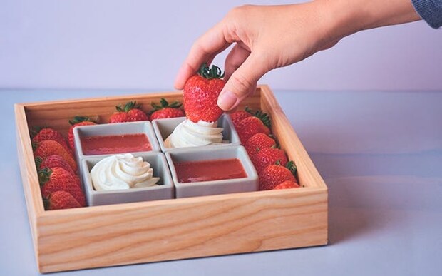ストロベリービュッフェの幕開けは、キラキラと輝くフレッシュいちごのウェルカムボックスからスタート。京都産ならではのみずみずしい甘みが、一気に幸せな気分を盛り上げてくれる。