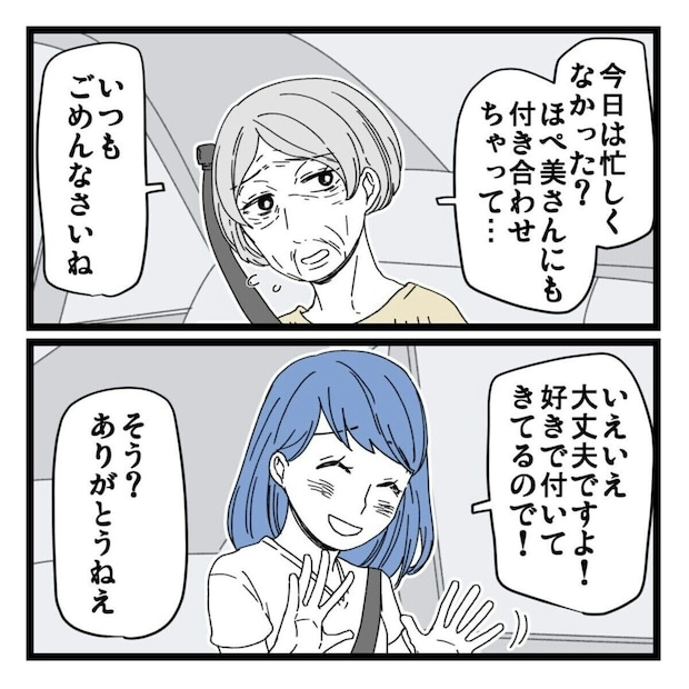 ほぺ美さんと義母の仲はとても良好で、週に1回の買い出しもほぺ美さんにとってはとても楽しい時間でした。ほぺ美さんの夫には姉がおり、2人で義母の介護について分担し合っていたいたようなのですが…。