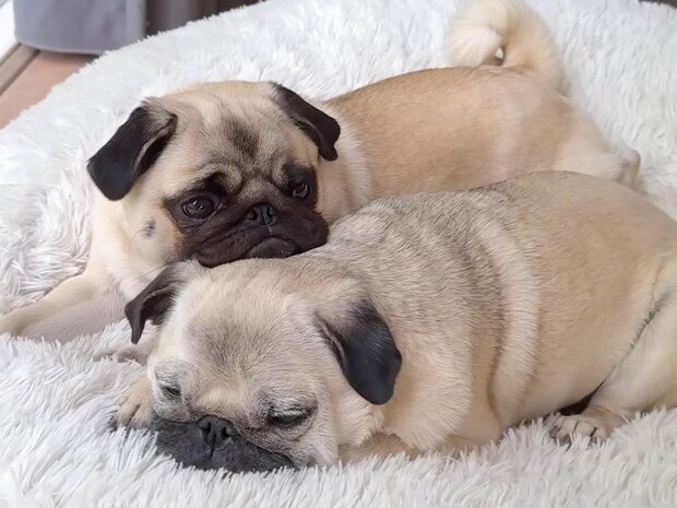 こちらのパグさんたちは、いつも一緒。