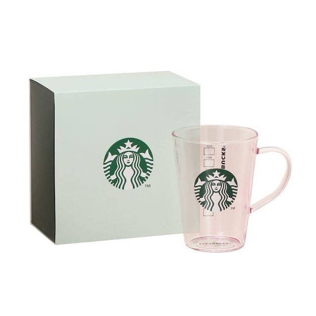 ギフトボックス入り耐熱グラスロゴマグピンクベージュ 384ml