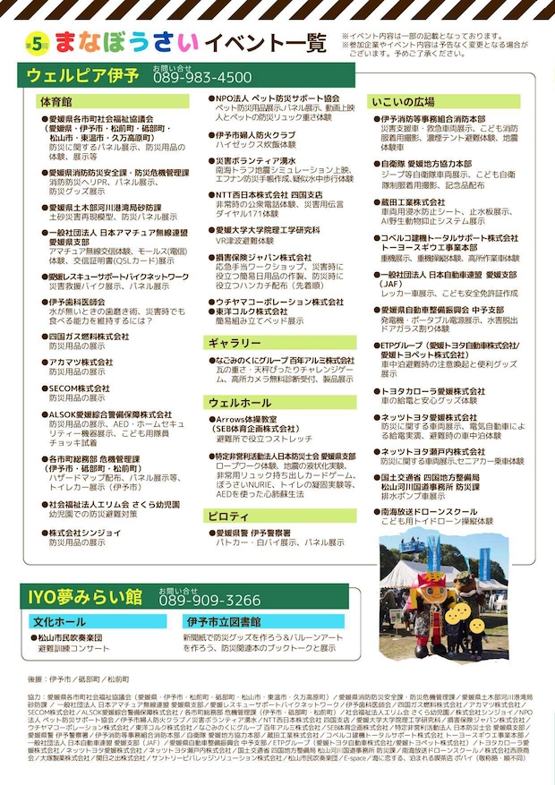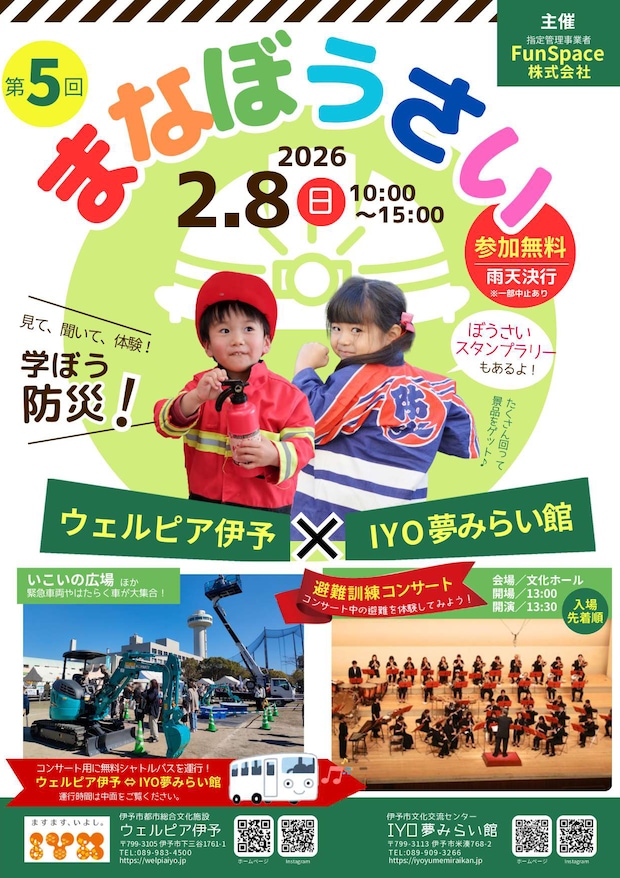 伊予市にある「ウェルピア伊予」と「IYO夢みらい館」では、楽しい体験や催しを通して、防災への知識を来場者と共に学んでいくイベントを2月8日(日)に合同開催!