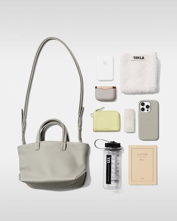 「エッセンシャルデイリーレザートート – ミニ」41,800円(税込)は、休日の外出に適した品のある佇まいが特徴だ。取り外し可能なショルダーストラップで斜めがけ、ハンドルで手持ちと使い分けられる2WAY仕様となっている。