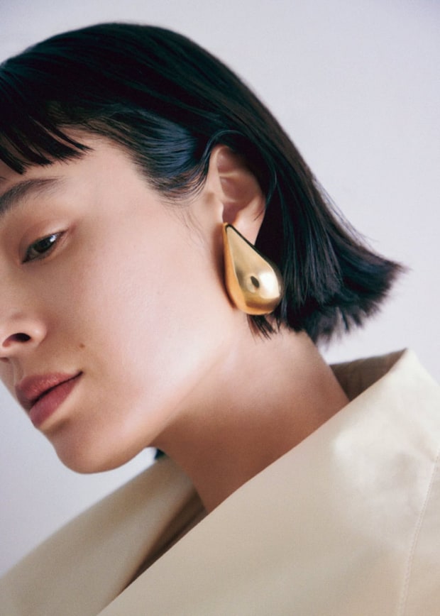 ピアス¥145,000、コート¥360,000(共にボッテガ・ヴェネタ/ボッテガ・ヴェネタ ジャパン)