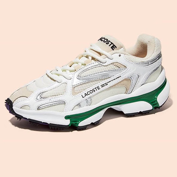 ミニスパイク形状のアウトソールで安定した歩きやすさ。スタイリッシュな見た目とロゴの組み合わせがポイント。スニーカー¥20,900(ラコステ/アダム エ ロペ)