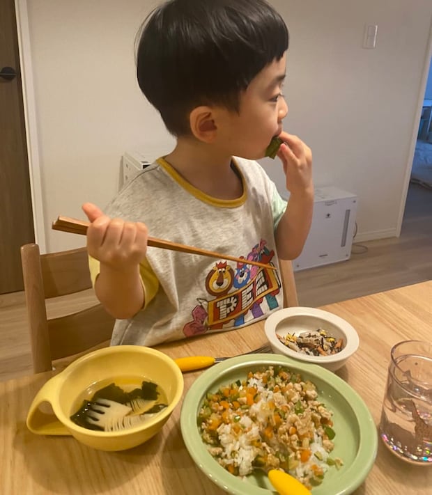 3歳になり、ひとりで食べることもすっかり板についてきたこのタイミングで、食器を新調したいと検討。これまでは落としても割れない竹の食器をメインで使っていましたが、軽くて動いてしまい、ちょっと食べづらそうだなと思ったのがきっかけです。そんなとき、出会ったのが、奈良県の吉野郡に工房を構える「いにま陶房」のやさしい器シリーズ。ご夫婦共に陶芸家でひとつひとつ手作り。こちらはご主人の鈴木雄一郎氏の作品です。ユニバーサルデザイン&こどもが使いやすい工夫に感動。器に返しがついているため、最後まで自分ですくって食べることができるんです。おかげでカレーやパスタ、焼きそば、スープ類も、キレイに最後まで食べられるようになりました。陶器なのである程度重さもあり、動きにくいところも◎。デザインもシンプルで好みです。とにかく子どもが食べやすそうで、大満足!