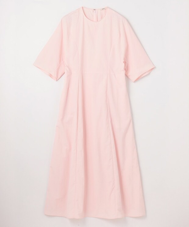 軽やかでアクティブ感のある素材、詰まったネックラインやドルマン仕様のハーフスリーブ、ハイウエスト切り替えに縦のダーツ。全てのデザイン要素が存分に生かされた、万能ドレスがこちら。バックファスナーなので、無地ドレスで気になる後ろ姿の間延び感やのっぺり感も解消。