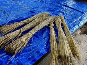 藁で縄をなう