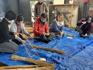 作柄占いのあとは、縄をなう体験を行いました。