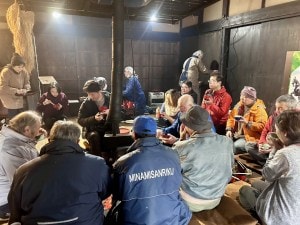 当日は、入谷地区の方にとどまらず町内から総勢約30名が集まりました。囲炉裏を囲んでみんなでまずは団らん。火にあたりながら語らう時間、心が落ち着きます。
