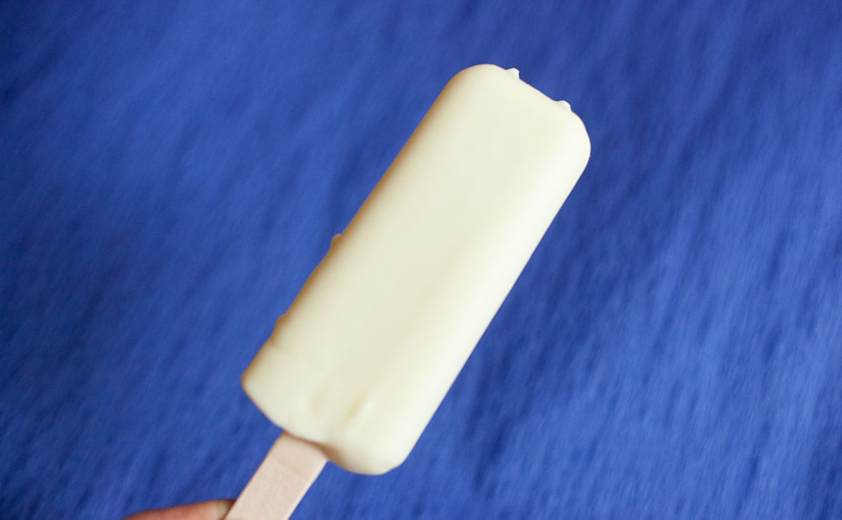 同商品は、ホワイトチョコアイスとホワイト生チョコ、ホワイトチョココーチングが3層仕立てになっていて、まさに“ホワイトチョコ尽くし”のアイス。「新商品」と言いつつ、実は初登場ではなく、私が記憶している限りでは昨年1月以来約1年ぶりの復活です!