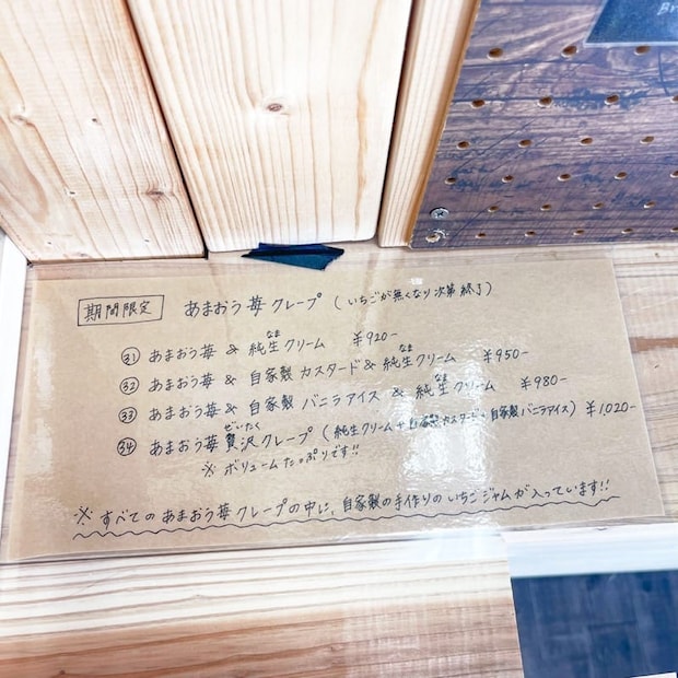 今回は、せっかくなので期間限定のあまおう苺クレープをご紹介したいと思います!