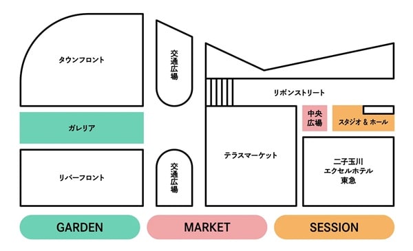 会場は、二子玉川ライズ内のガレリア、中央広場、スタジオ & ホールの3エリアで構成。植物に囲まれながら五感で楽しむウェルカムガーデン、世田谷の魅力が集結するマーケット、学びや対話が広がる参加型のセッションを展開する。
