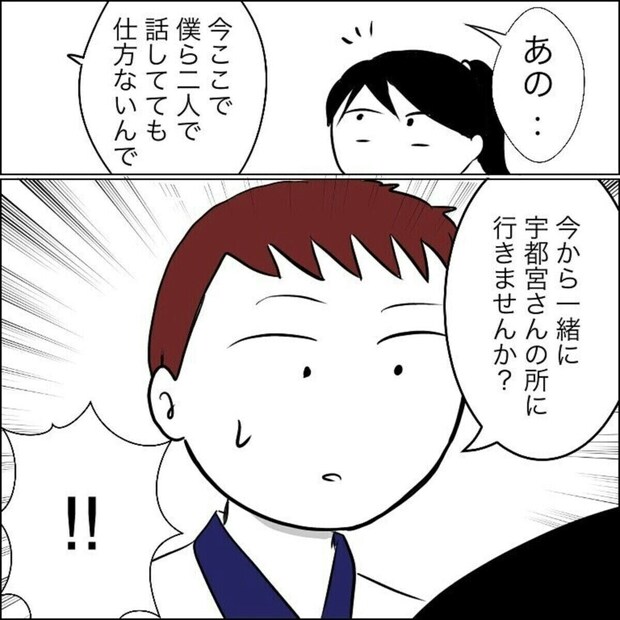なぜか宇都宮さんのところへ一緒に行って話すよう言われ、Aiさんはなぜ自分が行かなきゃいけないのかとモヤモヤしながら、宇都宮さんの部屋へ…。Aiさんに気づいた様子の宇都宮さん。謝罪の言葉は出るのでしょうか。